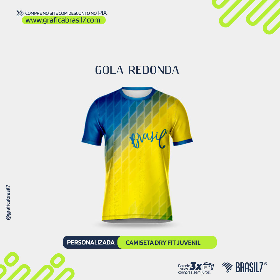 A personalização é feita em Sublimação por Dry Fit, já que o tecido é 100% poliéster. Essa técnica garante uma finalização precisa da estampa, como se o desenho já fosse integrado ao material desde a fabricação. O processo consiste em transferir a arte para o tecido por meio de uma prensa aquecida, que transforma a tinta sublimática em gás. Com o calor entre 180ºC e 200°C, o papel e o tecido entram em contato, aplicando a estampa perfeitamente.