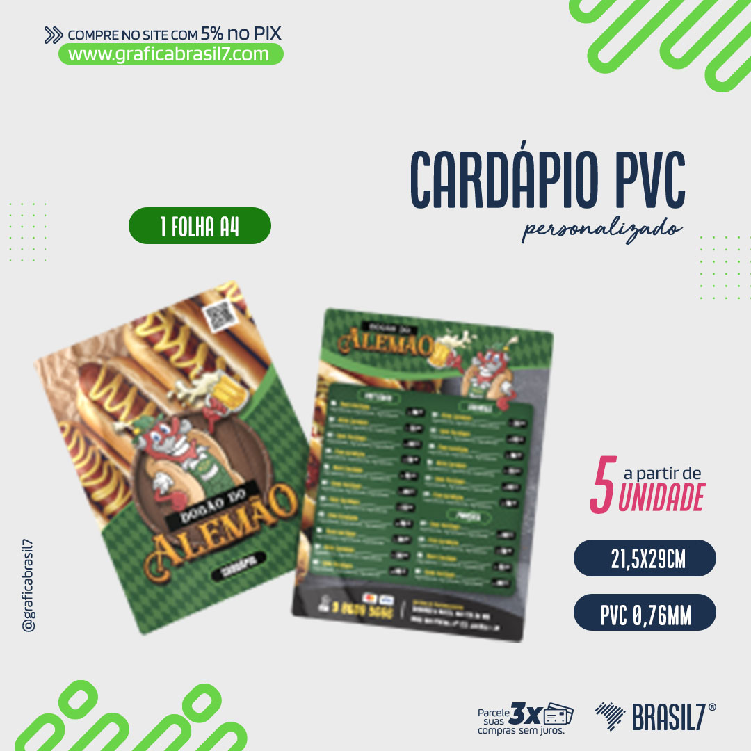 CARDÁPIO 1 FOLHA A4 em PVC 0,76mm 21x29cm